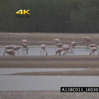 Flock of Flamingo Standing and fishing in the River WS