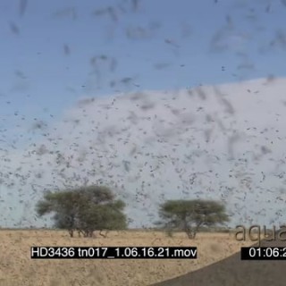 Swarm of Locusts flying around in frame bushes in BG FOCUS PULL XCU CU PAN