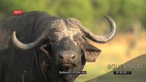 Slow motion of buffalo bull looking at camera and flapping ears