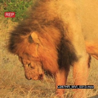 Lion Male digging in sand MCU PAN