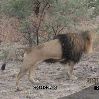 African Cecil Male Lion walking and Marking Territory in bushveld