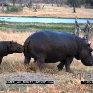 Hippo mother pee on hippo calf’s face and they both walk off