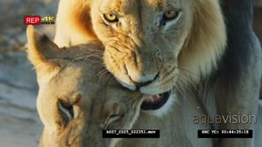Close up shot of male lion and lioness’s face mating