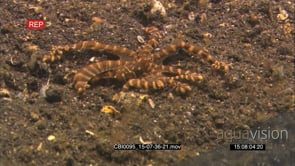 Select options DownloadTracking shot of a Mimic octopus, Thaumoctopus mimicus slithering along the seabed looking for a hole to hide in