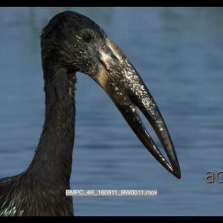 A reveal shot of the face of African openbill stork CU