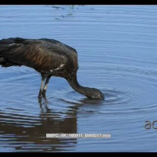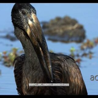African openbill washing off the hard shell pieces of a snail it has caught and then feeding on the flesh
