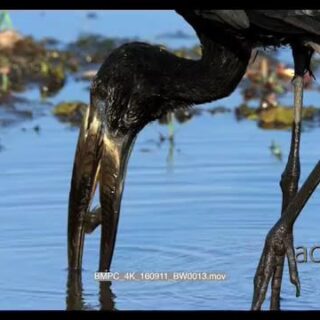 African OpenBilled stork fishing and feeding GOOD LIGHT