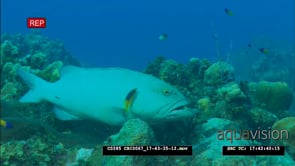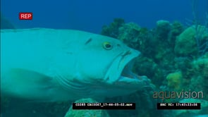 Peacock Rockcod swimming through cleaning station with mouth open Bluestreak Cleaner Wrasses cleaning