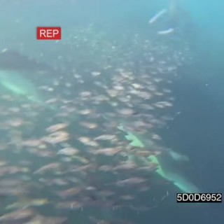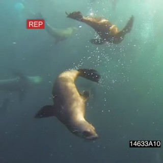 Cape Fur seals flipping playing near camera Common Dolphins feeding off Sardine baitball as Bryde’s Whale passes by below UNDERWATER HANDHELD