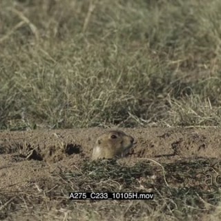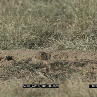 Prairie Dog standing on prairie and another coming out of hole MLS PAN