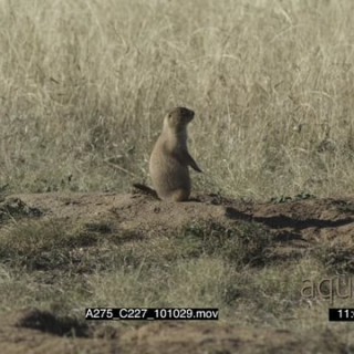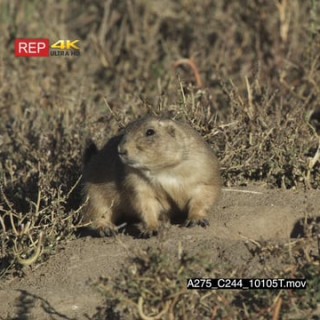 Prairie Dog standing on prairie and laying down LS
