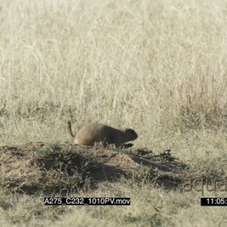 Prairie Dog standing on prairie eating then walking away LS