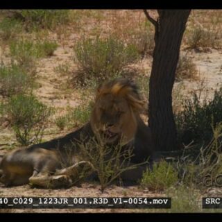 Male lion with black mane standing up and then resting in the shade of a tree