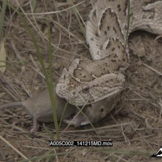 Puff adder killing by jabbing fang into a mouse PREDATION