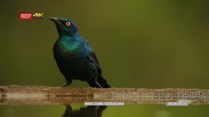 Medium shot of gloosy starling drinking