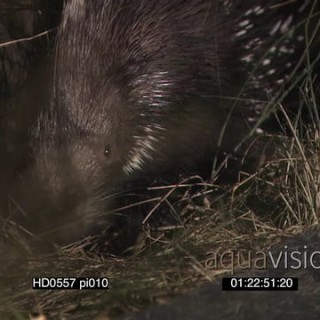 Cape Porcupine foraging over dirt mount towards camera into burrow at NIGHT