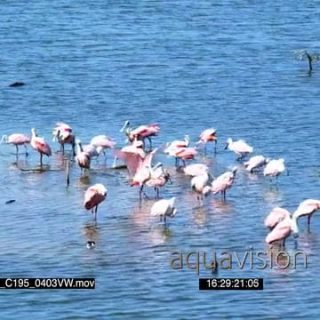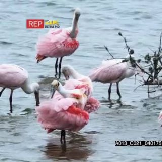 Roseate Spoonbill flock standing moving drinking Fishing and flapping wings in a lake HA WS