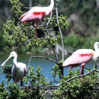 Roseate Spoonbills standing on tree eating moving and looking around MS PAN