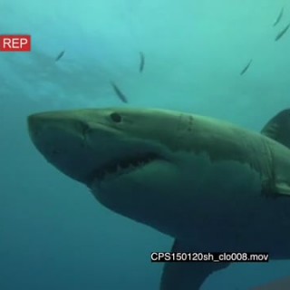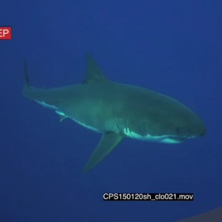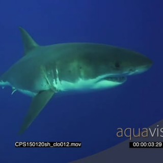 Great White Shark swimming underwater in ocean passing by UW AmCam