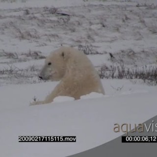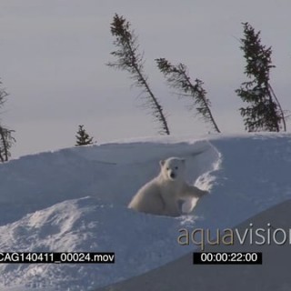 Polar Bear cub outside winter den playing scouting around searching for mother