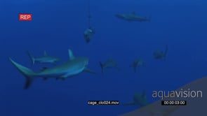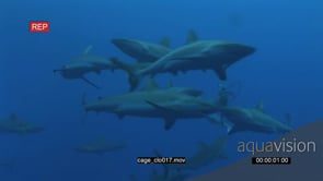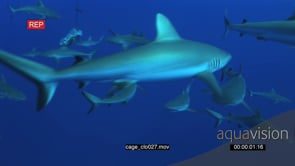 Select options DownloadGrey Reef Sharks swimming underwater in ocean fighting for bait and biting it LWS HAND
