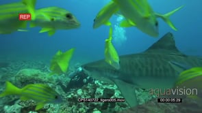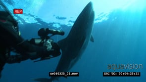Select options DownloadDiver swimming underwater in ocean towards Tiger Shark and it turns away WS TRA MLS HAND