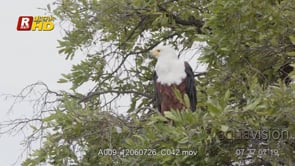 Select options DownloadAfrican Fish eagle perched on a tree, looking around and foraging from a high angle, MWS;DAY.