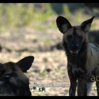 A Pack of African Wild Dogs resting and sitting under the tree shade looking at the camera MWS