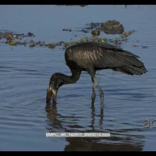 Spoonbill bird and African Openbill stork fishing and eats snails in the river