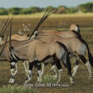 Herd of young and adult Gemsbok gather, looking around and walking away.