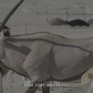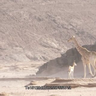 Giraffe running past springbok then walks out of frame DRY MLS PAN