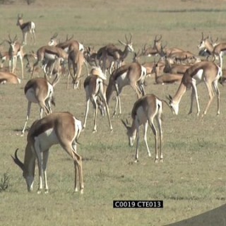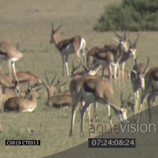 Springbok herd grazing walking on short grass LS