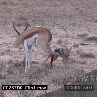 Black-backed Jackals attack and kill Springbok Antelope AmCam