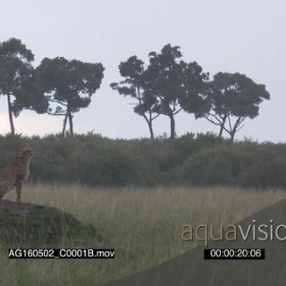 Select options DownloadCheetah (Acinonyx jubatus) sitting on a hill scouting while raining heavily