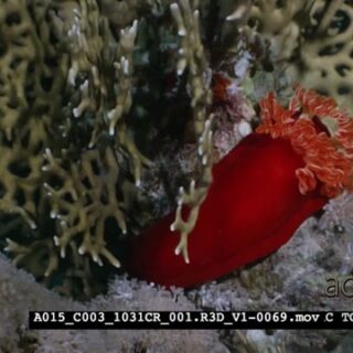A Close Up of a large red Spanish Dancer, Hexabranchus sanguineus hunting for food at night.
