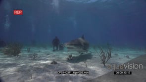 Tiger Shark in SLOW MOTION swimming between Scuba Divers UW