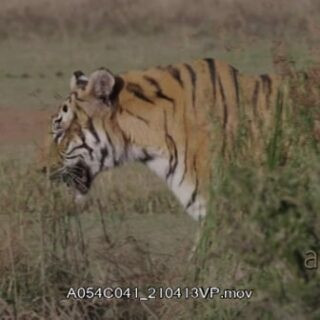 Select options DownloadAdult Tiger walking, scouting and patrolling on a long dry grass, MWS;PAN;LATE AFTERNOON