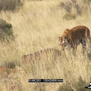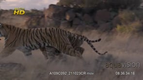 Select options DownloadAdult Tiger intimidation behaviour display, running towards and looking around, MLS;DAY