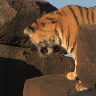 Tiger resting on a cliff face rubbing MWS