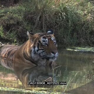 Tiger resting inside pond looking around MLS ZI MS