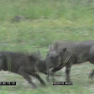 Warthogs fighting a and chasing each other WS MWS