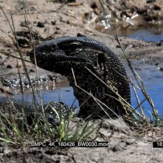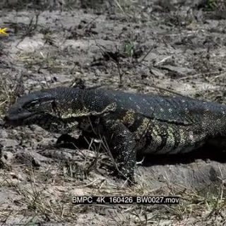 A Monitor Lizard Searching for food on the dry Riverbank MS