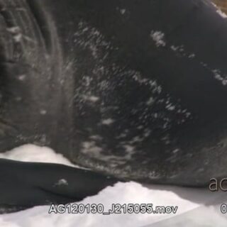 Weddell seal crawling on stomach to move on ice, turn and looking around.