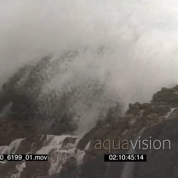 Big waves rolling in over rocks Overcast rain conditions