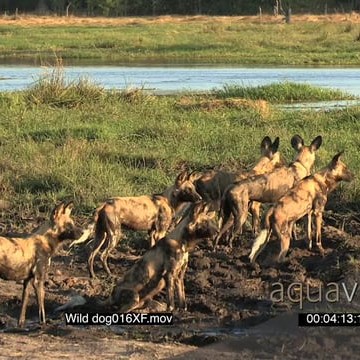 A pack of wild dogs watching out for prey in the Okavango Delta