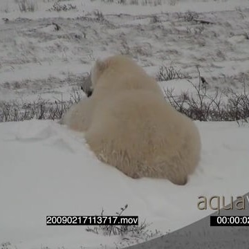 Polar bear scouting around rolling in snow digging playing