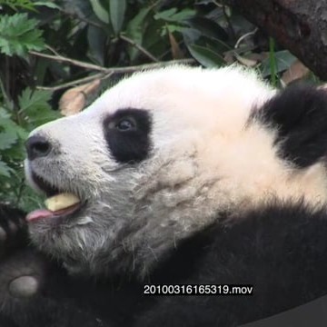 Giant Panda bear cub sitting and feeding on a fruit MS GENERAL BEHAVIOUR