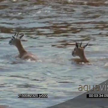 A Thomson’s gazelle herd crossing the river, crocodile tries to catch one and fails but gets able to kill the other one SHAKY