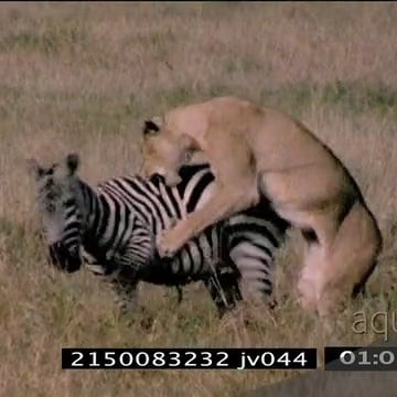 Lioness catches, take down and kills a zebras