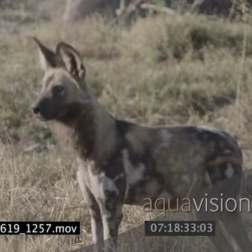 African wild dog pack hunting patrolling area scouting around sniffing ground SEMI DRY